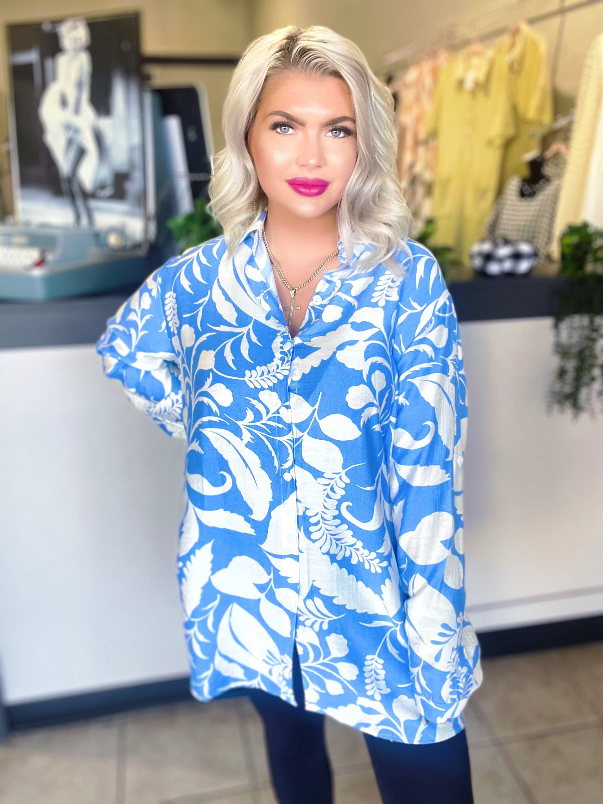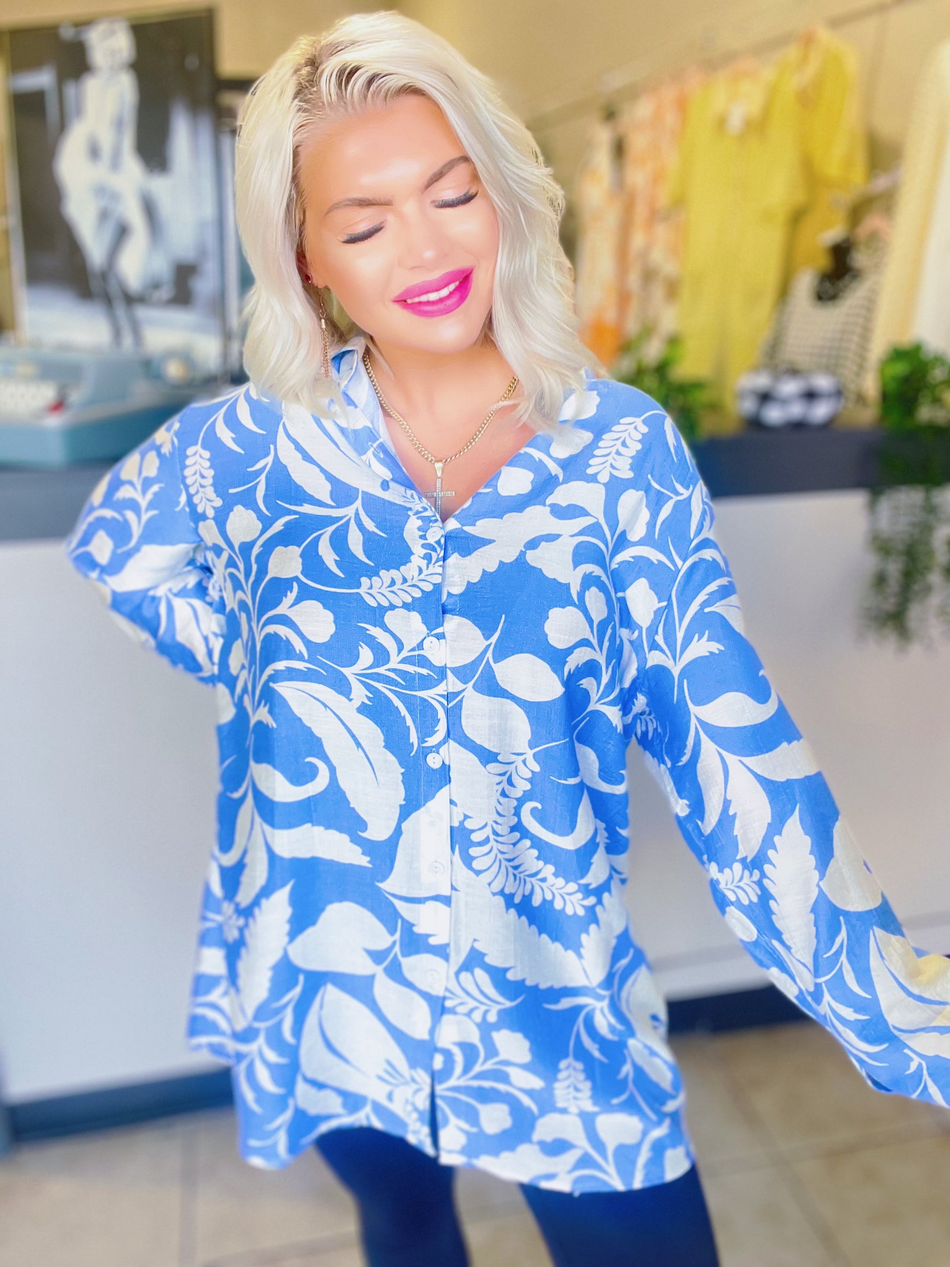 This piece features a stylish high-low hem and a delicate button-up front, offering a graceful and versatile silhouette. Crafted from a luxurious blend of cotton, linen, and Tencel.